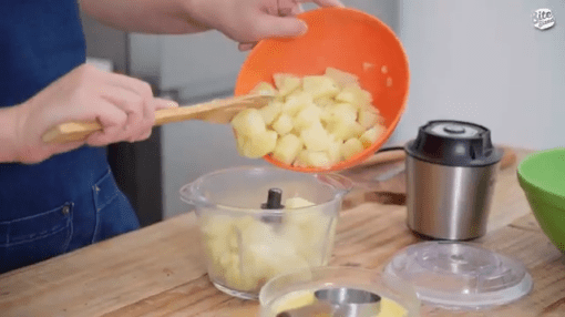 Place the milk mixture in the food processor with the boiled potatoes then blend until smooth.