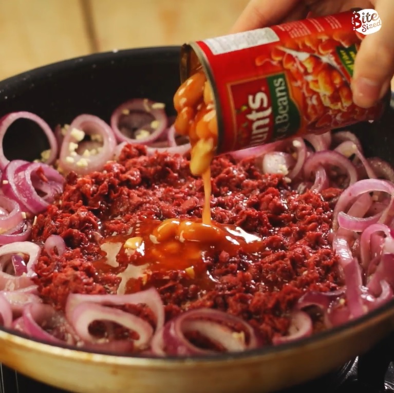 - Make cheesy corned beef and beans