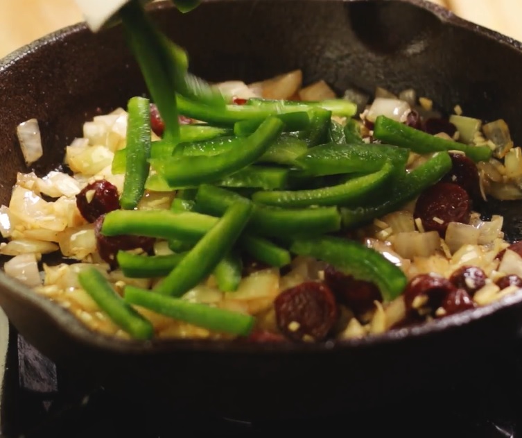 Add garlic, onion, and bell peppers and continue sautéing until fragrant and translucent.