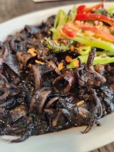 For those who love squid and its savory-sour noir goodness: Adobong Pusit (Php 330)