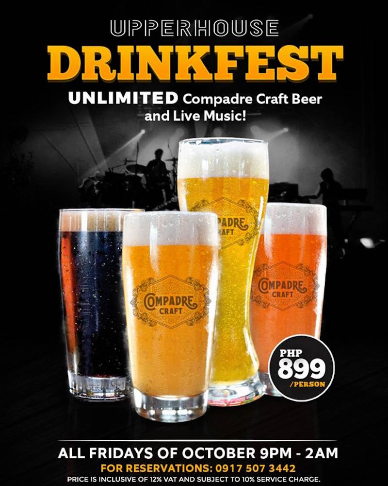 For only PHP899 per person, taste unlimited Compadre Craft Beer and dance along to live music every Friday of October at Upperhouse, BGC, from 9pm to 2am.
