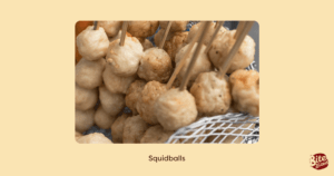 Squidballs are made of puréed squid blended with fish meat and mixed with starch and spices. They are rounder in size plus elastic and bouncier in texture. They are often added to mains like stir-fry noodles and soups since they make great protein extenders to the dish.