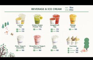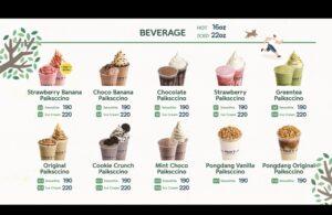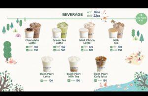 There’s also non-coffee-based drinks like Chocolate Latte, Green Tea, Mint Choco, Milk Tea, Black Pearl Latte, Black Pearl Milk Tea, and Black Pearl Café Latte, Lemon Tea, Green Grape Flower Tea, Grapefruit Tea, Mango, Juice, Plain or Strawberry Yogurt Smoothies, Milk Shake and even ice cream (plain, chocolate, or caramel).