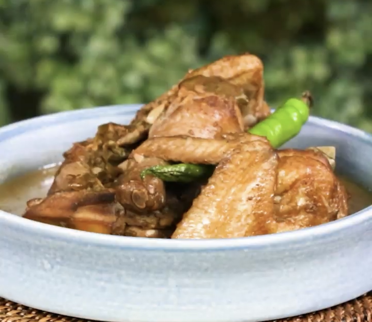 Pour the coconut milk. Let boil. Cover and simmer until the chicken becomes tender.