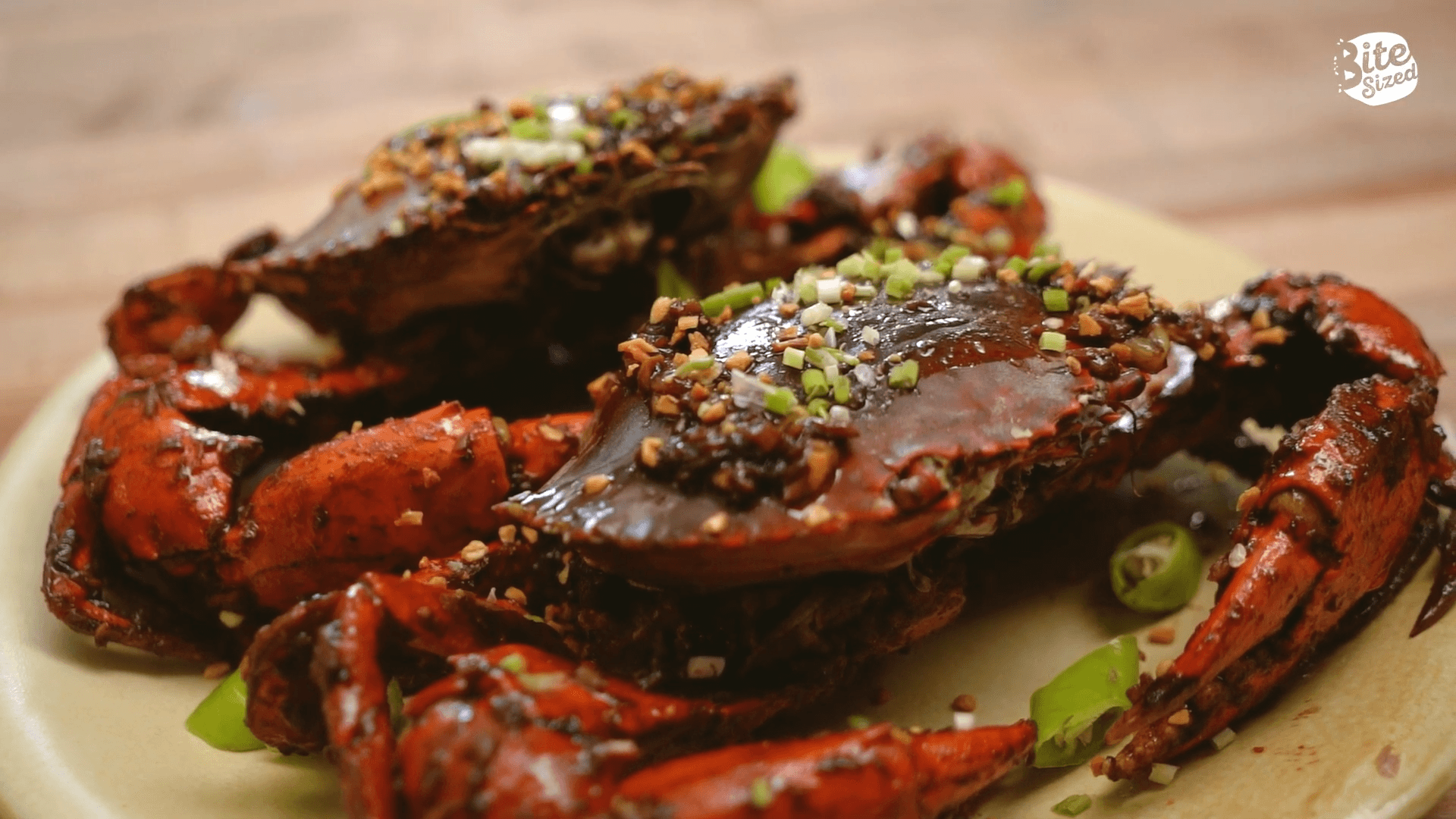 Coat the crab body with the flour mixture. In a wook, deep-fry the coated crab body for 3-5 mins or until golden brown. Transfer to a bowl then set aside.
