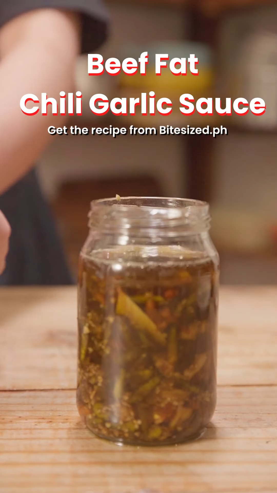 Once the fat renders, add the canola oil, garlic bulb, siling baluyo, star anise and bay leaves. Cook on low heat for 10 mins.