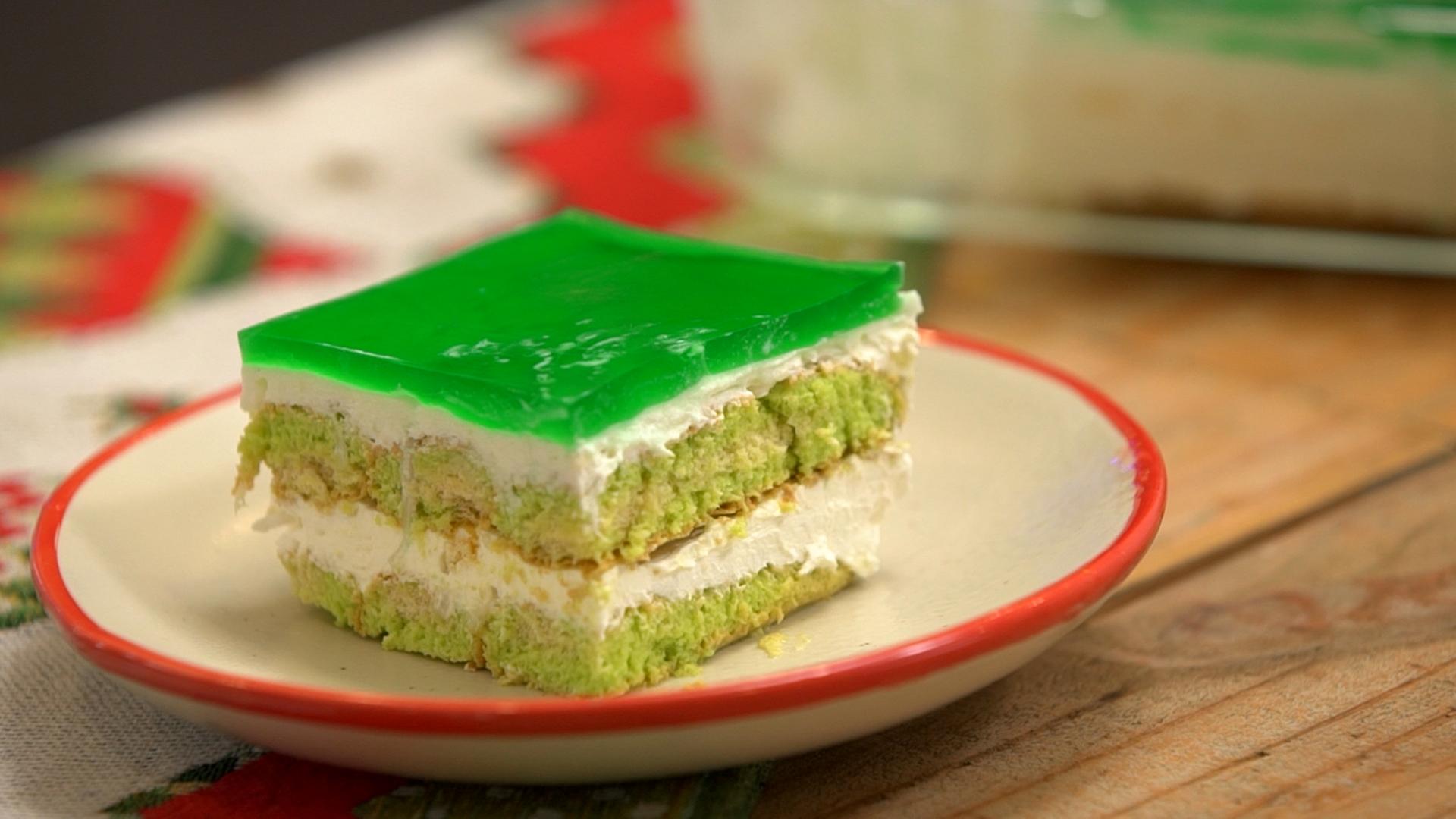 Quickly dip the ladyfingers in the buko pandan-flavored milk. Don’t submerge the ladyfingers or it might crumble.