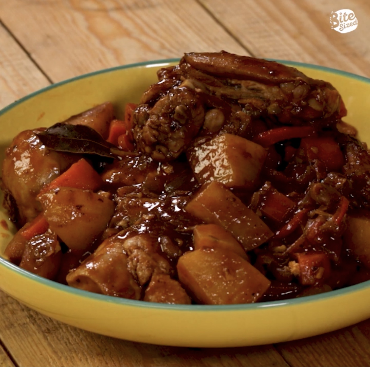 Add in the bay leaf and tomato paste and render it for about 2-3 minutes before adding in your seasoned chicken parts. Sear chicken for about 2-5 minutes before pouring in water/ chicken broth.
