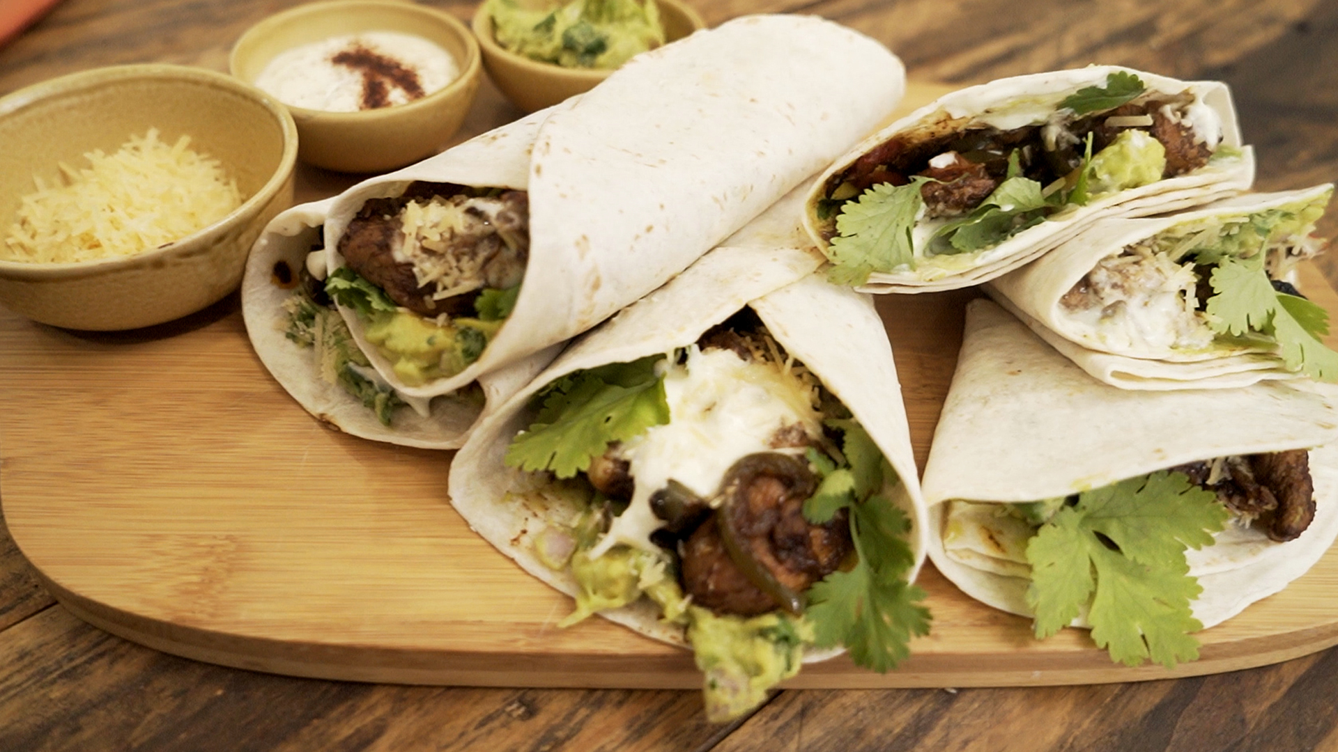 When ready to serve, heat up a sizzling plate. Add in the chicken and the vegetables sauce. Before serving drizzle the serving plate and garnish with shredded queso de bola, sour cream, fresh cilantro, and calamansi. Serve guacamole and toasted tortillas on the side.