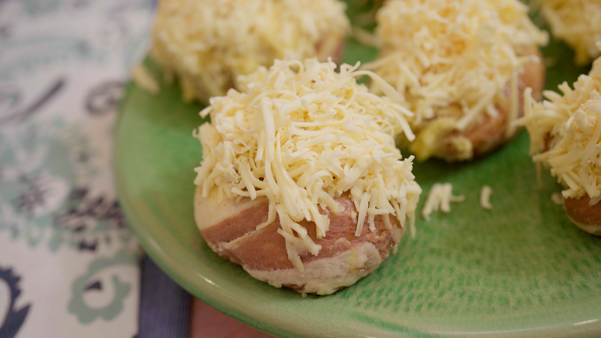 Spread the cream top of the cooled Ensaymada bread and dip it into the cheddar cheese.