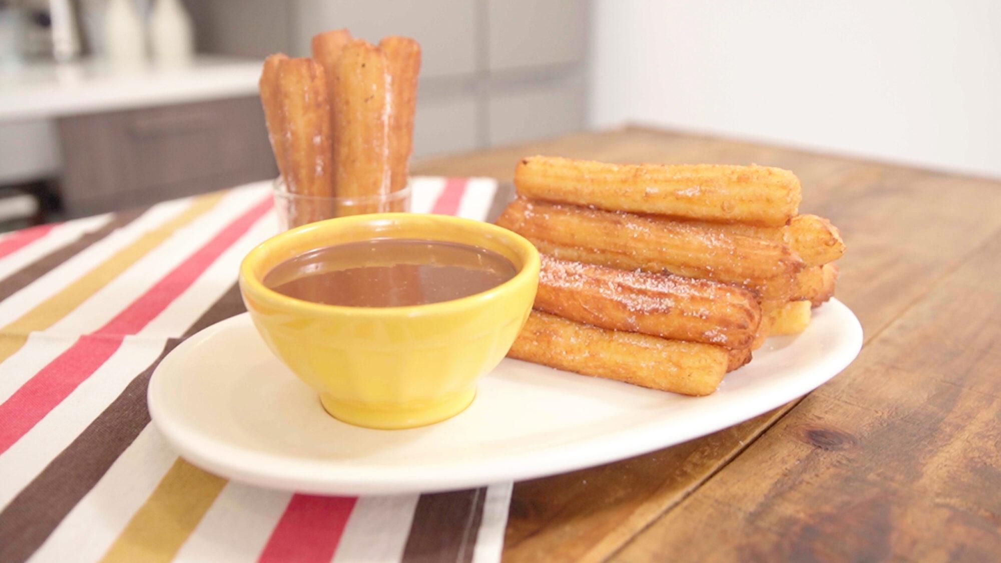 Pipe the dough over the pot of oil to a length of about 4 inches, then using clean scissors or a sharp knife, cut it so it releases into the oil. Pipe 2-3 churros at a time, fry them until they are golden brown.