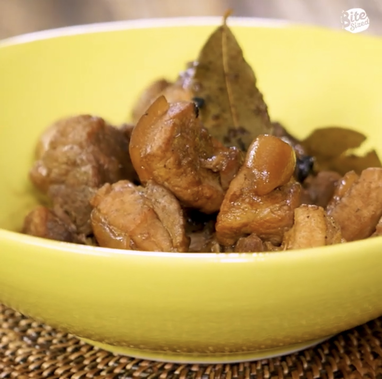 Add the bay leaves, black peppercorns, soy sauce, and vinegar. simmer until tender and cooked all the way.