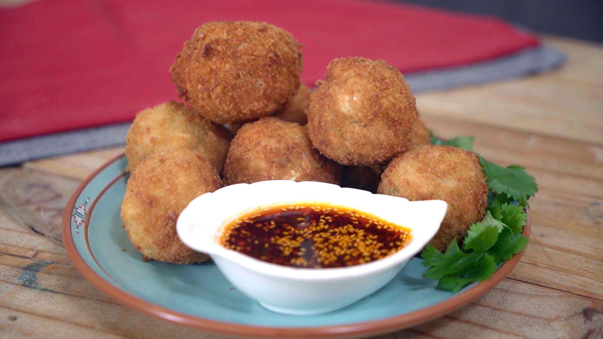 Succulent deep fried crab balls with spicy chili garlic sauce.