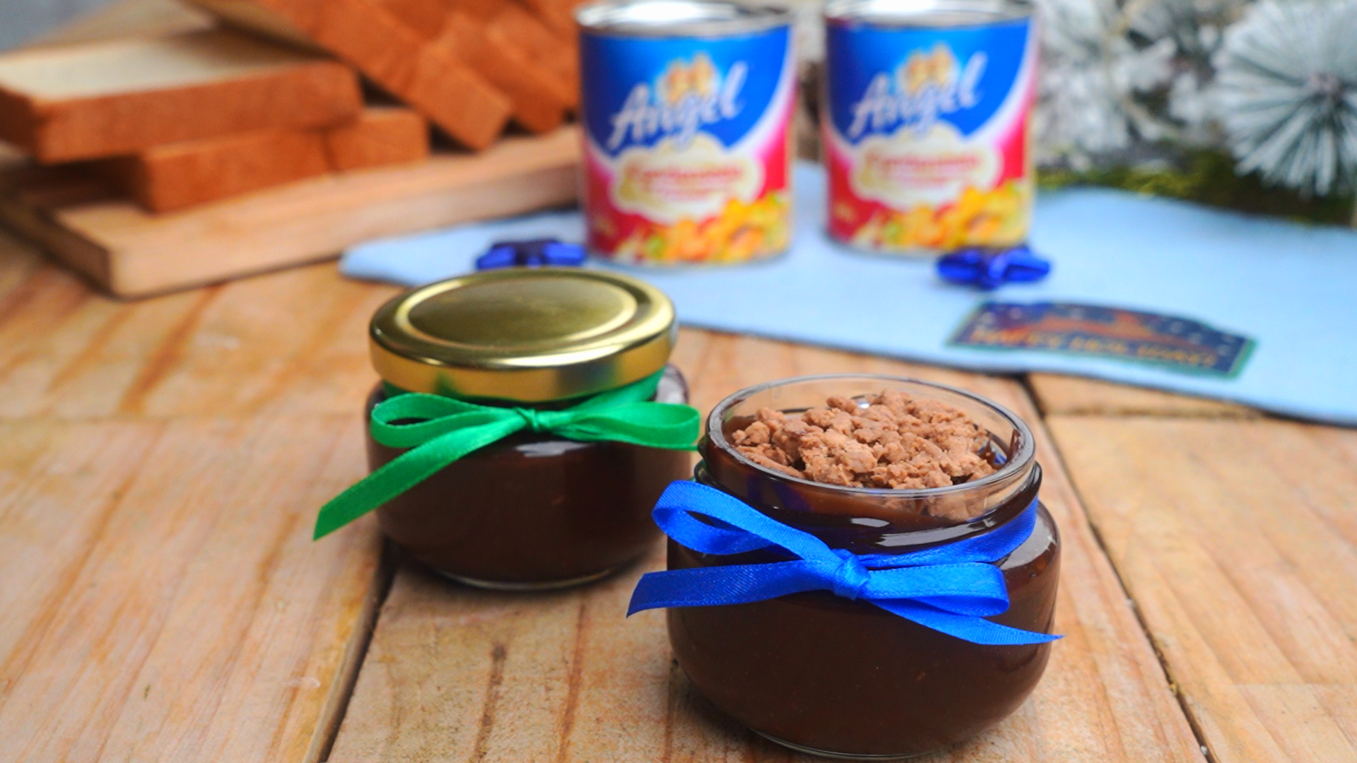 Prepare a piping bag by putting it in a tall glass with the piping bag opening folded over the mouth of the glass. Carefully pour the chocolate spread into the piping bag. This is to ensure a clean transfer of spread into the storage jars. Do this in batches in case the spread does not fit all in the piping bag.