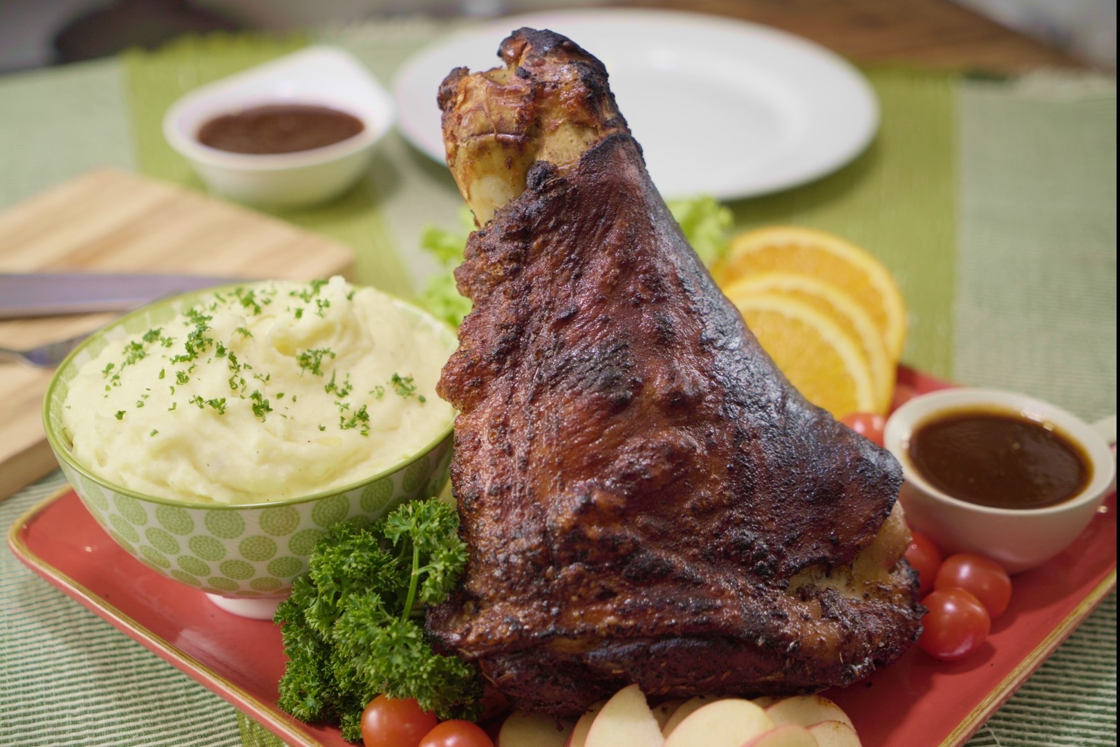 Festive Lechon Pata is a show-stopping holiday dish that brings together the succulent richness of crispy pork with the warm, aromatic flavors of a perfectly seasoned dry rub and a zesty orange sauce. This dish is ideal for celebrations, combining bold flavors with a presentation that will impress guests at any gathering.