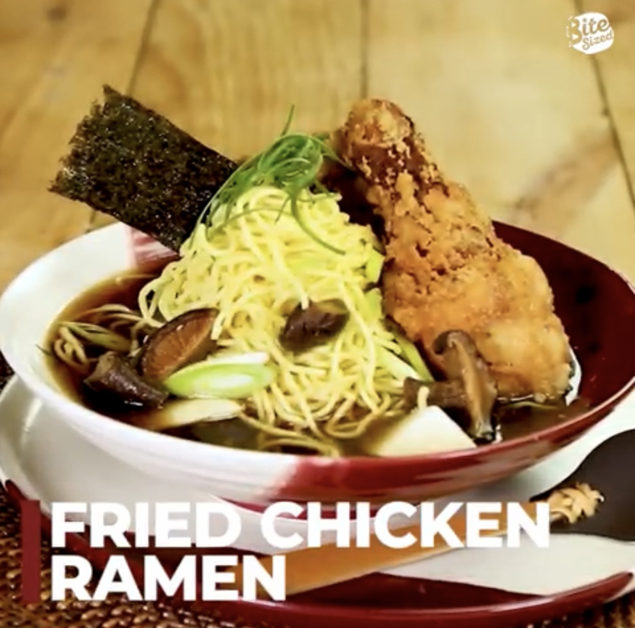 In a bowl, place a portion of noodles and ladle in the soup over the noodles, then top with a sliced boiled egg, the fried chicken, nori sheets, and sliced spring onions.