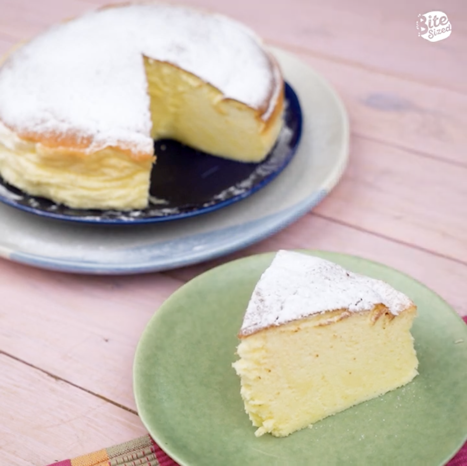 Bake in a water bath at 200 degrees Celsius for 20 - 30 minutes, until the cheesecake is set but still jiggly and golden on top. Carefully remove from pan.