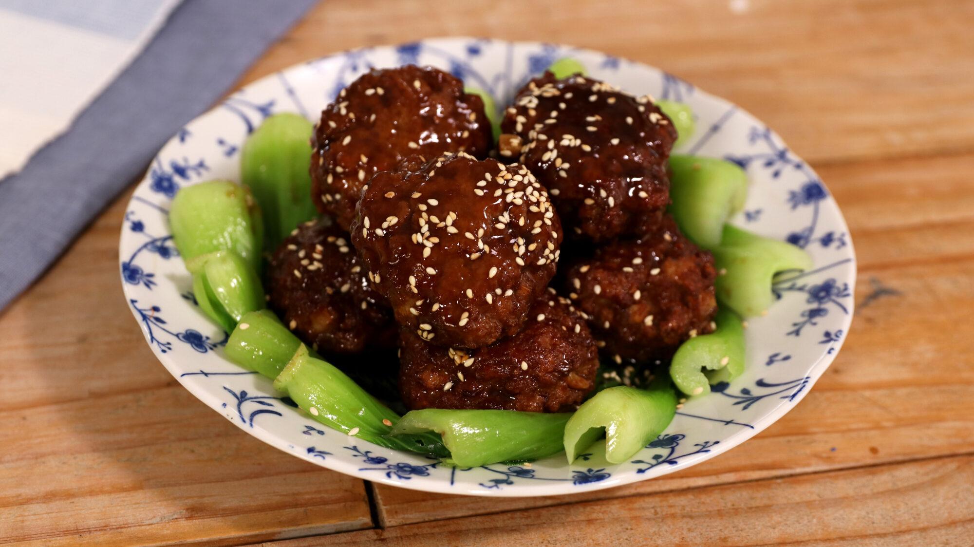 Saute the ginger for 1 minute over high heat. Add the shaoxing wine, soy sauce, oyster sauce, water and brown sugar. Boil for two mins before adding the meatballs. Simmer for 10 mins. Turning the meatball halfway through.