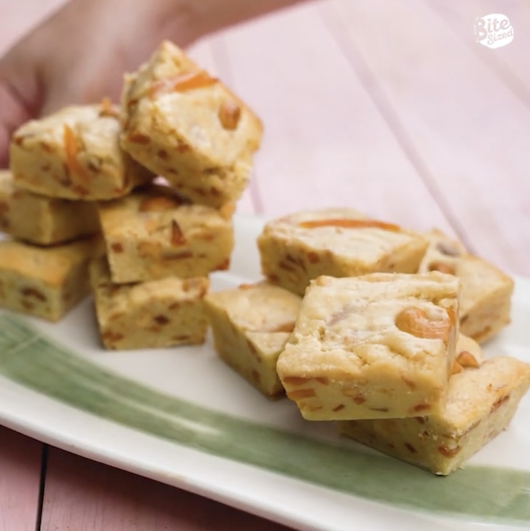 Pour batter into a greased pan and bake at 170 degrees Celsius for 20 minutes. Cut into equal squares.