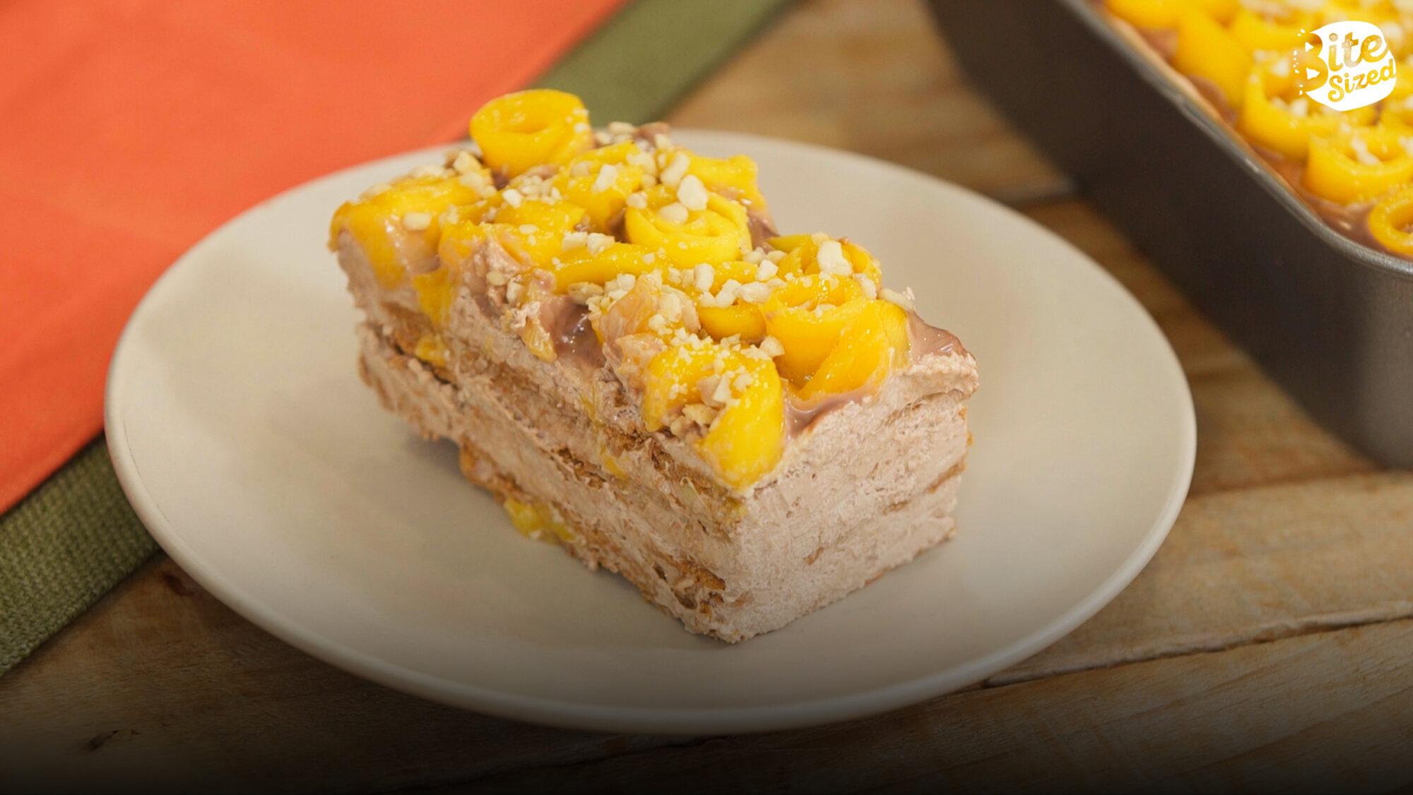 Once all the layers have been added top slice mangoes and cashews on top. Cover it with clingwrap and chill it overnight
