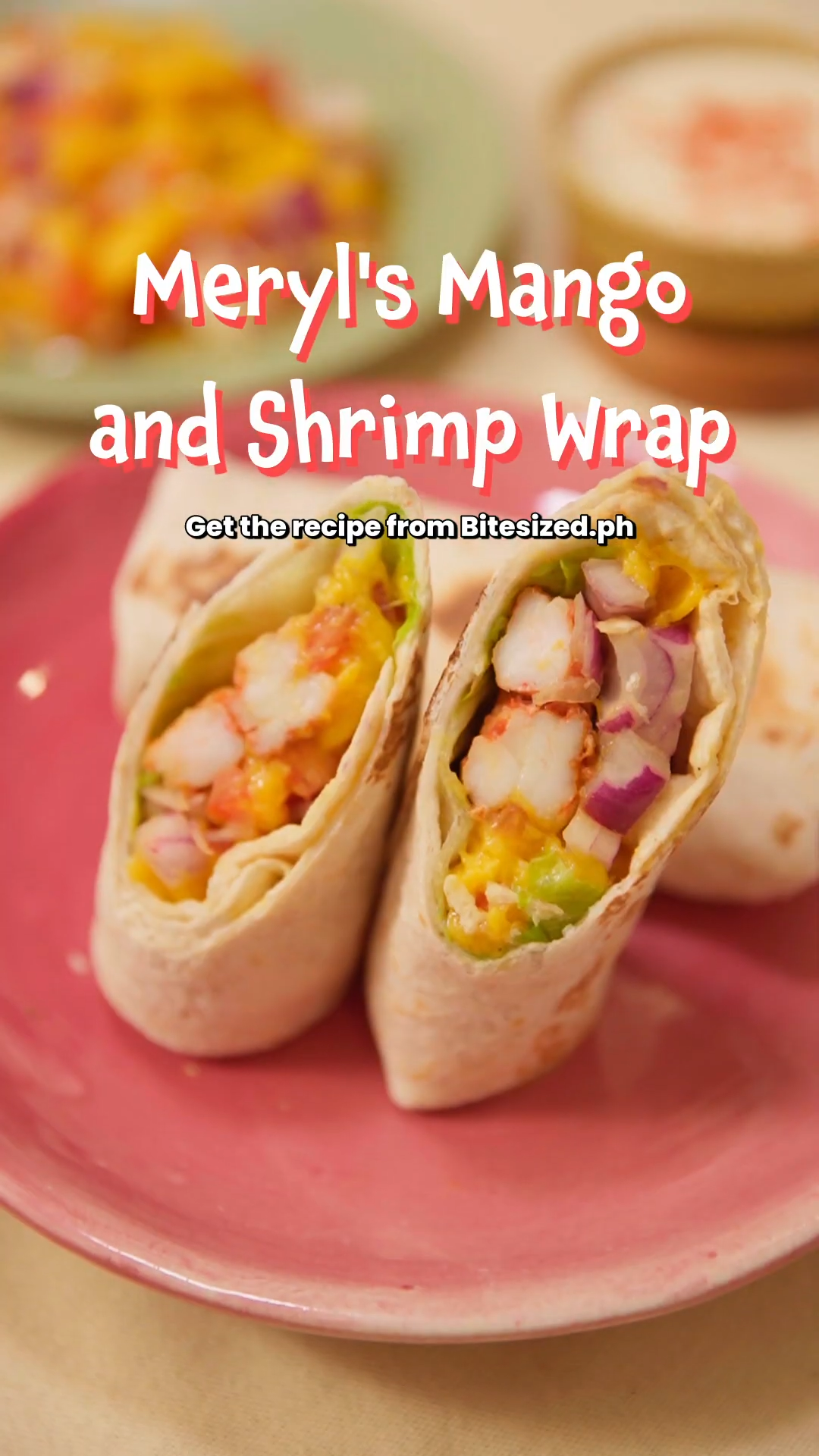 Add the lettuce, shrimp and mango salsa. Fold the wrap then toast the wrap.