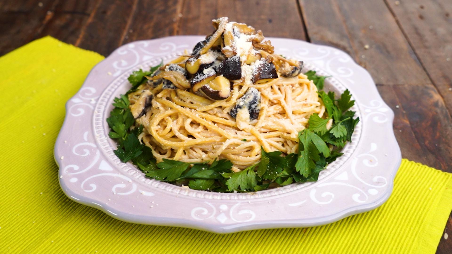 Add the cooked pasta and toss so that all the noodles are coated with the sauce. Remove from heat and sprinkle with Parmesan cheese and chopped parsley.