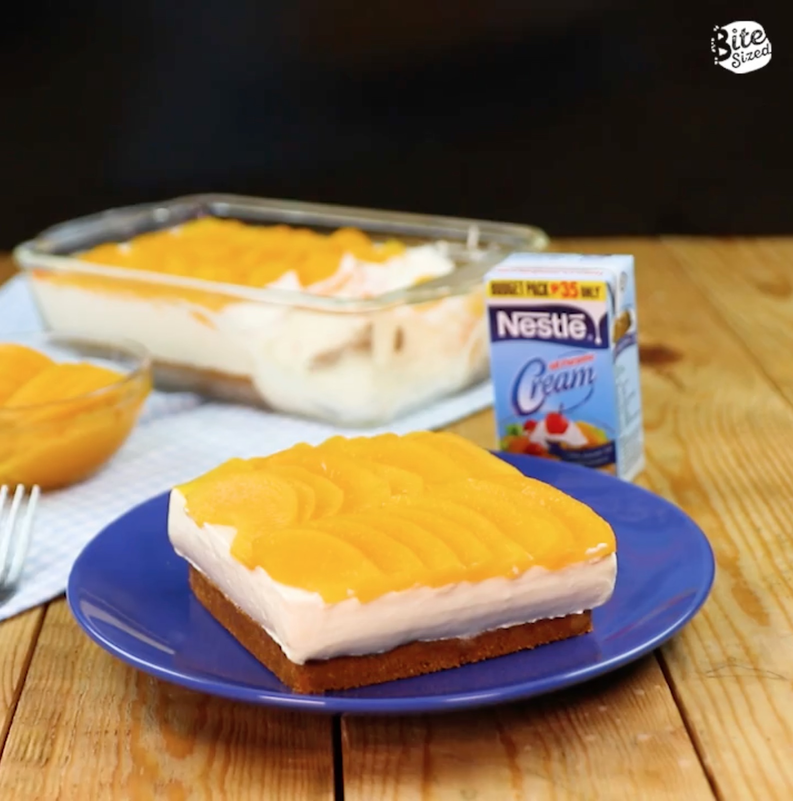 Assemble peaches and sweetened cream in layers. Refrigerate overnight. Serve well chilled.