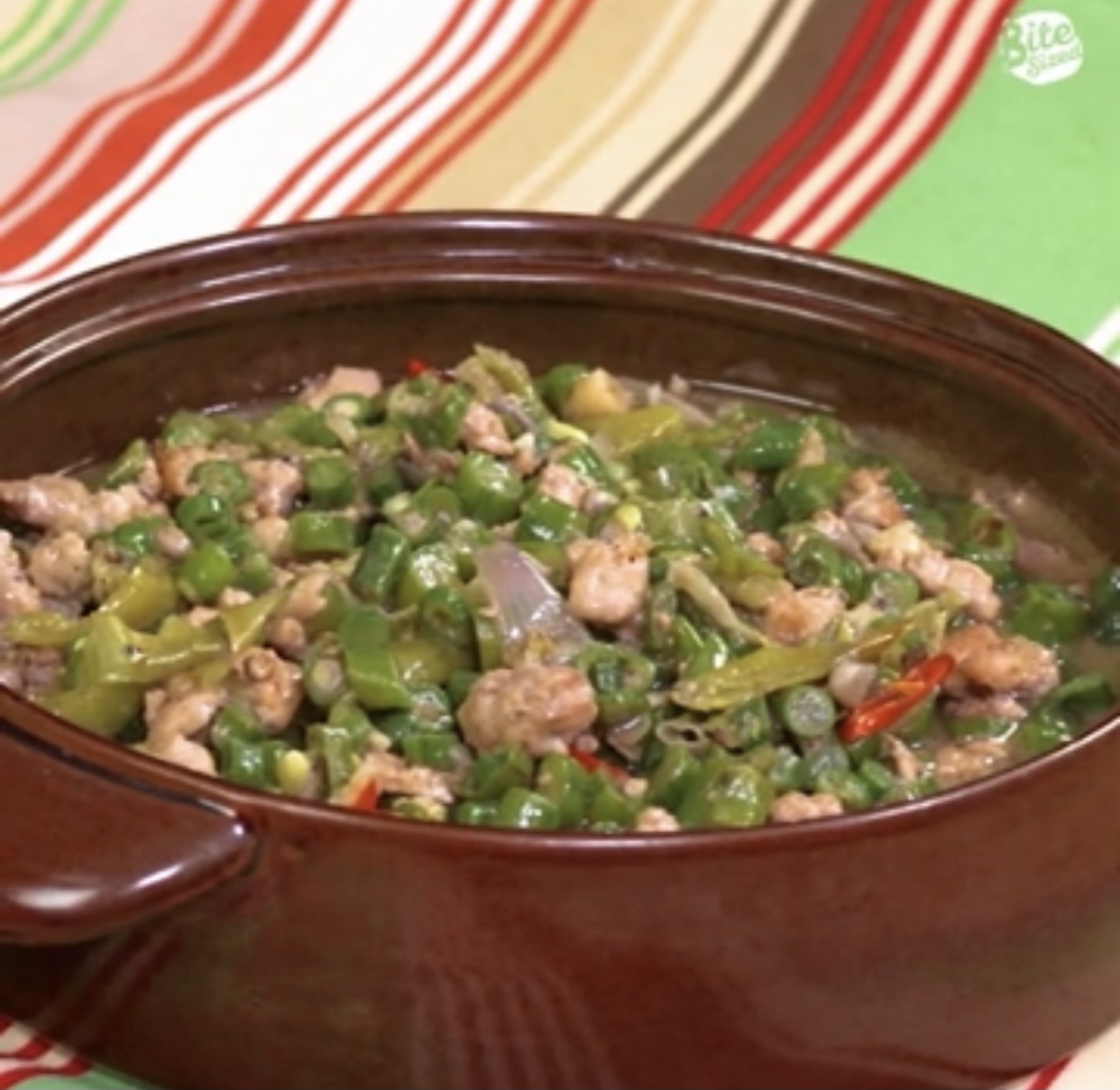 Heat oil in pan on medium heat. Sauté garlic, onions, and ginger until aromatic. Add the 2 chilies and sauté for another minute before adding the ground pork.