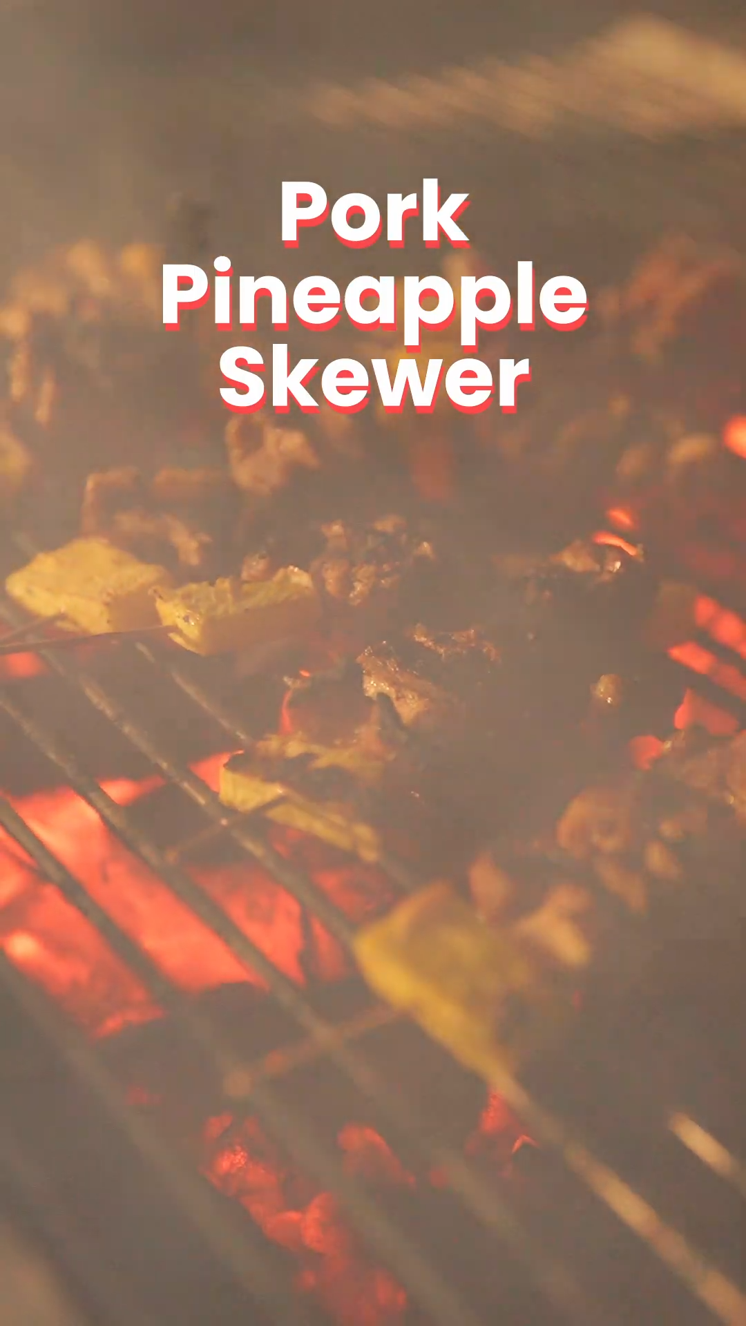 Build your barbeque, alternate the pork, pineapples and red onion.