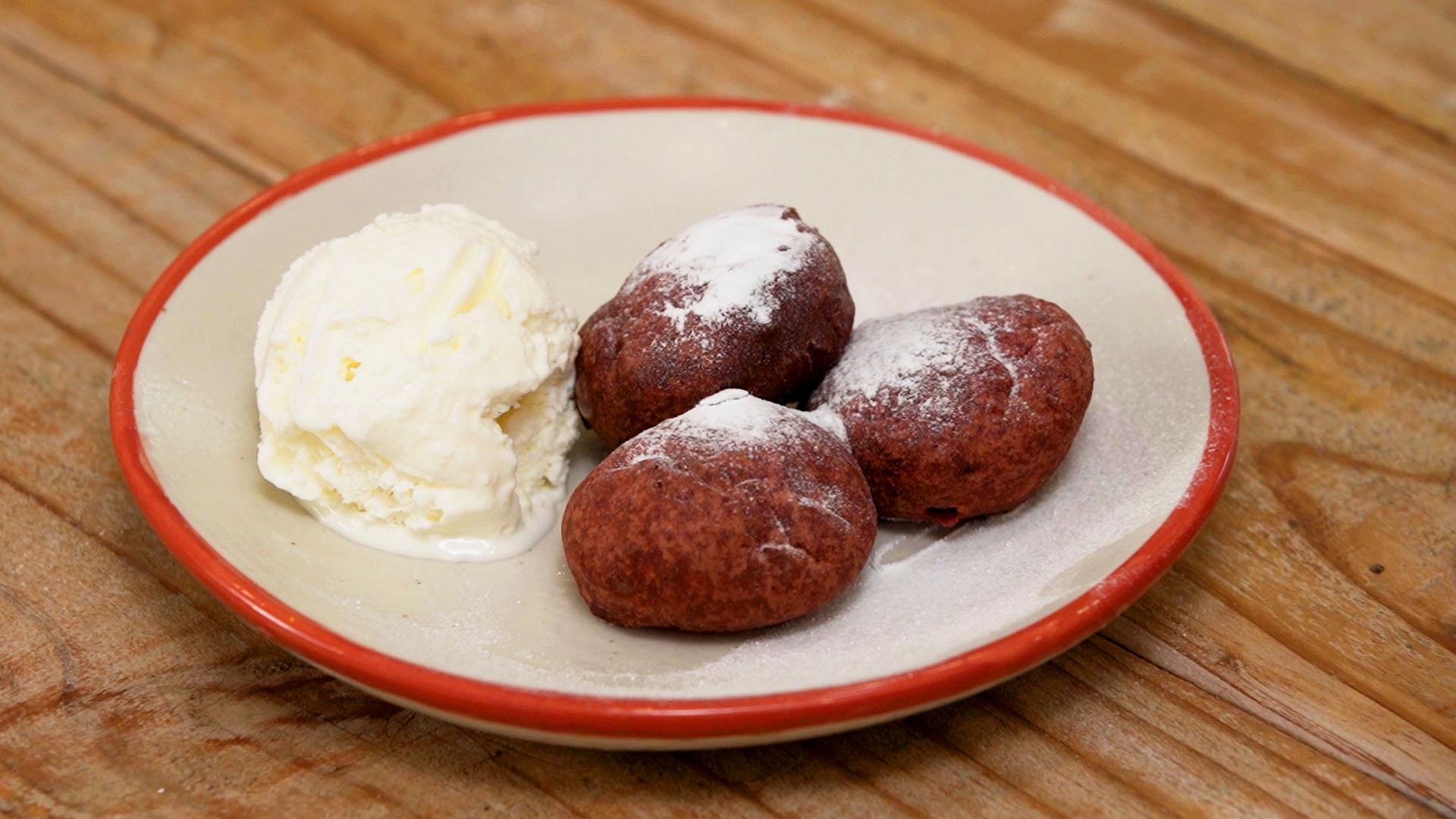 Remove the cookie from the oil with tongs and drain on paper towels. Dust with confectioner’s sugar and serve with vanilla ice cream. Serve and enjoy
