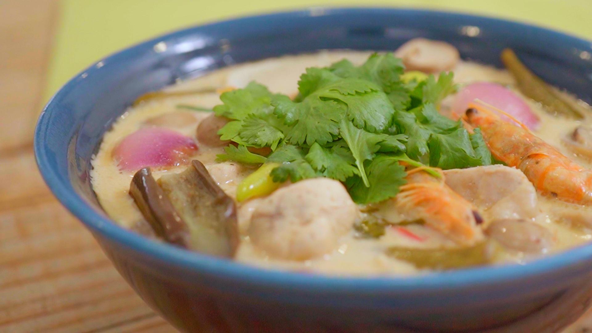 A few minutes before turning off the heat, add in the coconut cream and cilantro leaves. Serve hot.