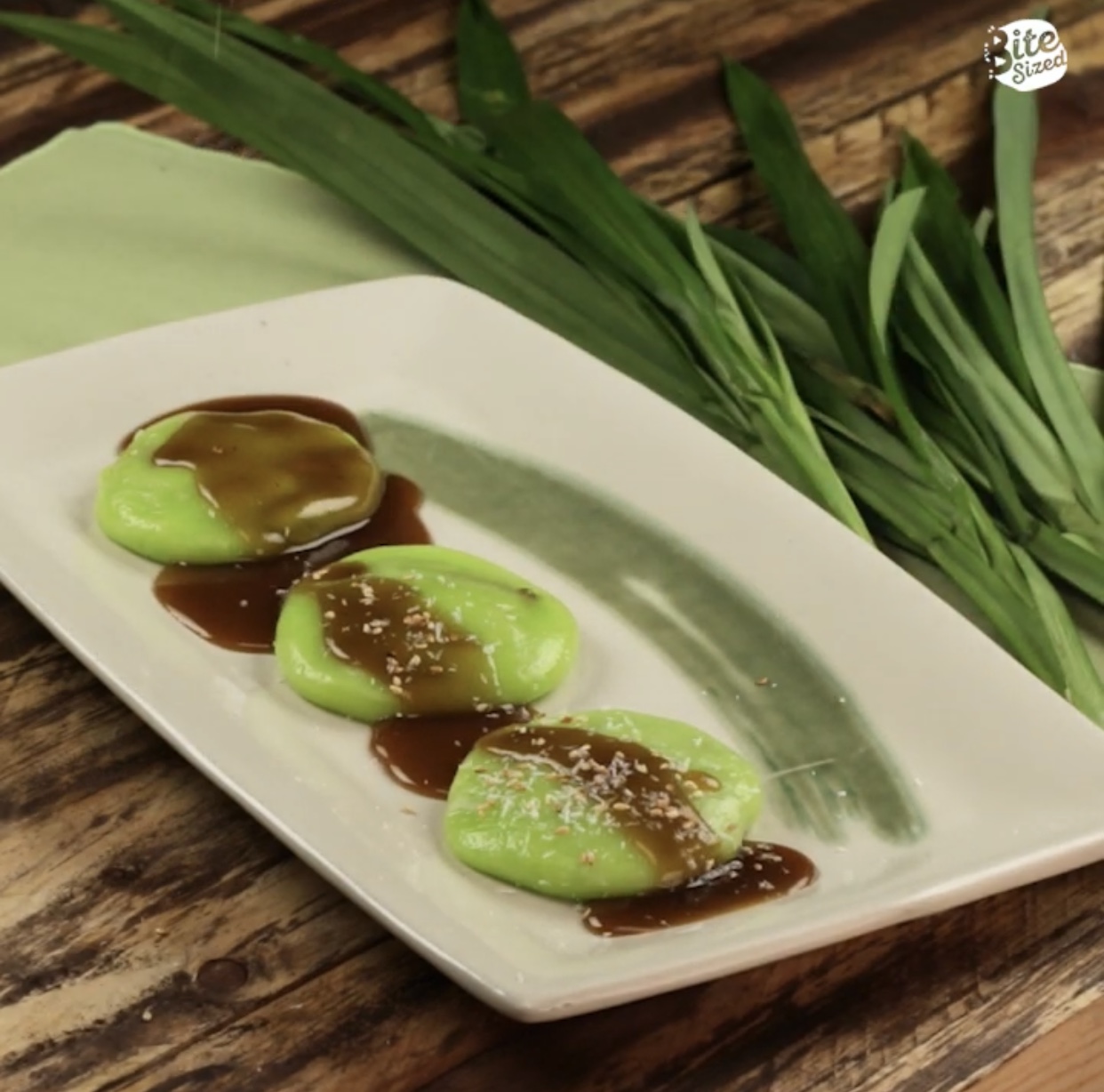 Combine glutinous rice flour and pandan water to make a pliable, smooth dough. Form into slightly thick medium-sized patties. Set aside onto a banana leaf or plate dusted with flour.