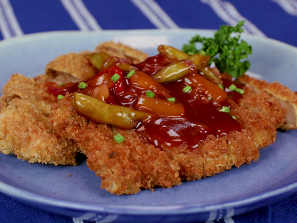 Deep fry pork chops in oil for a few minutes, until golden brown.