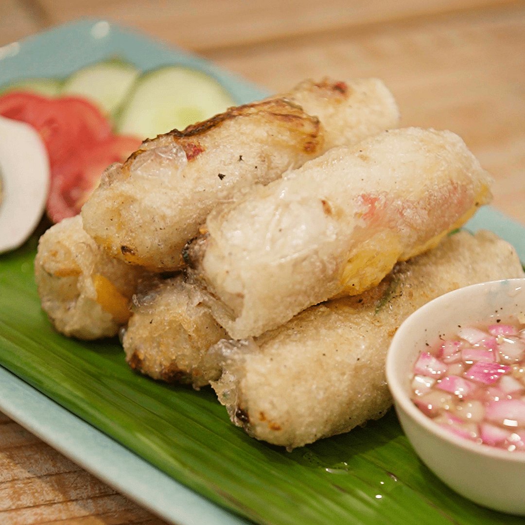 In a pan, heat oil then fry the rice paper until crispy. Transfers to a serving plate and served with the season vinegar