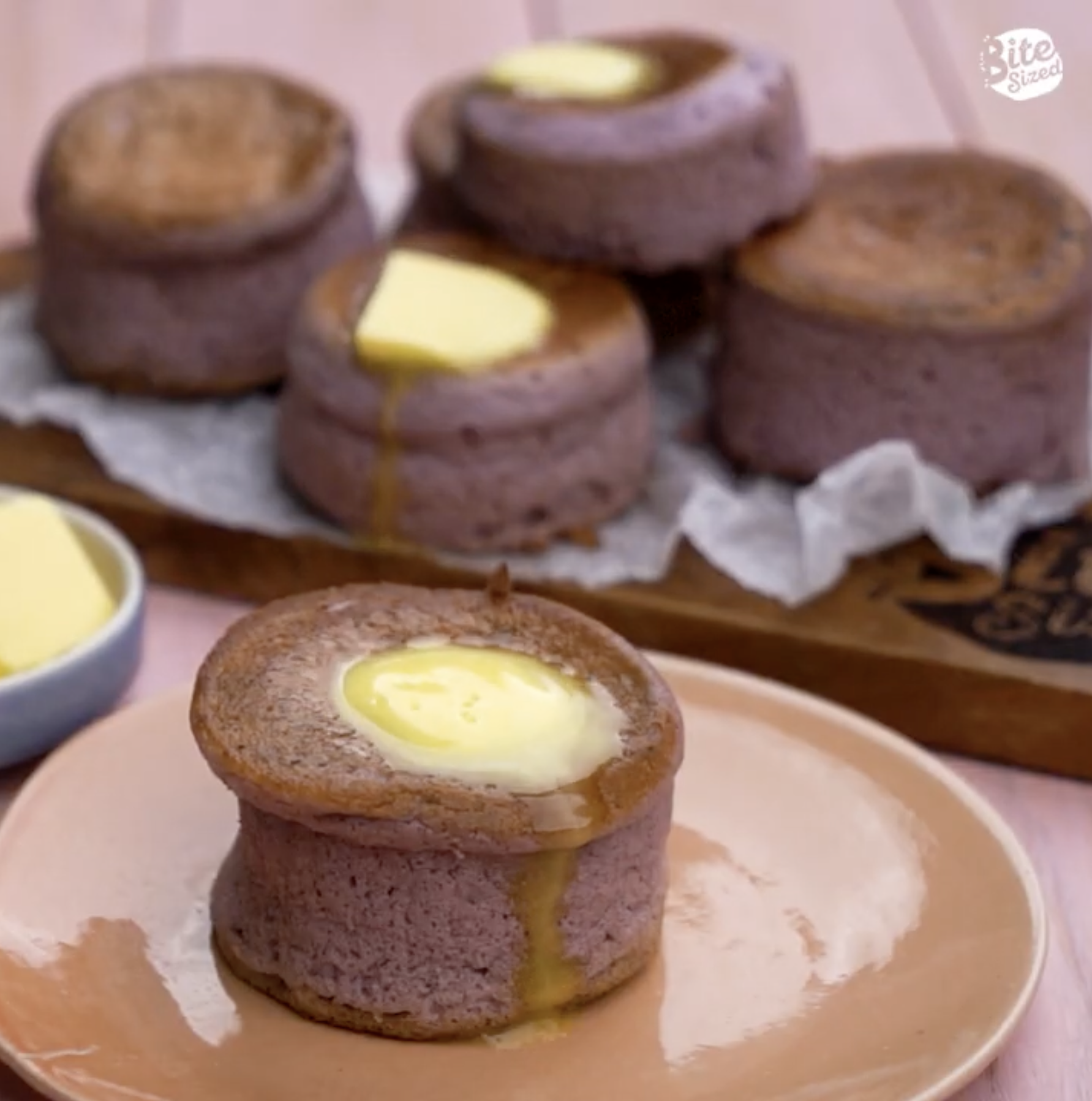 Pour the pancake batter to fill the mold until halfway. Cover the pan and cook on medium-low heat until the pancake has risen to the top of the mold and the center is jiggly. carefully flip, cover, and cook for another 5 minutes on this side.