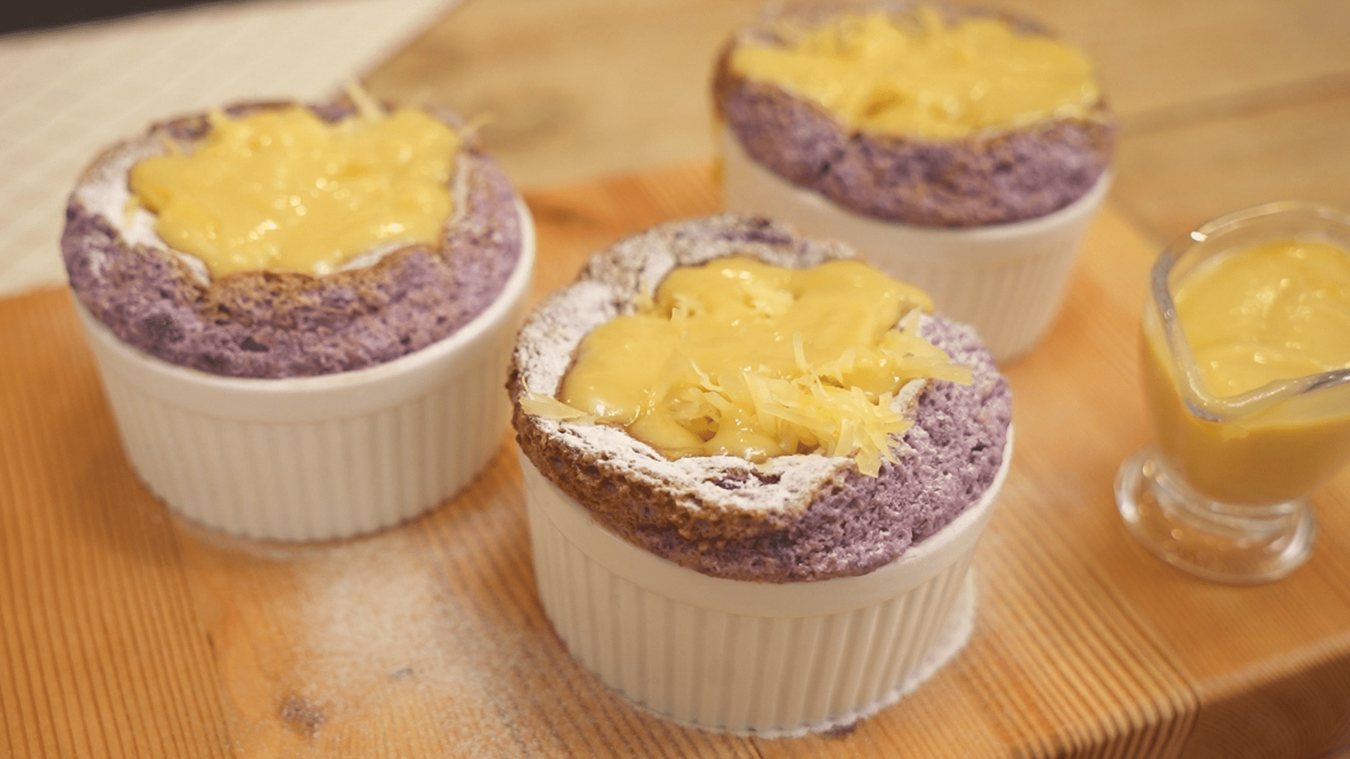 A fluffy and exquisite puto soufflé made with Ube!