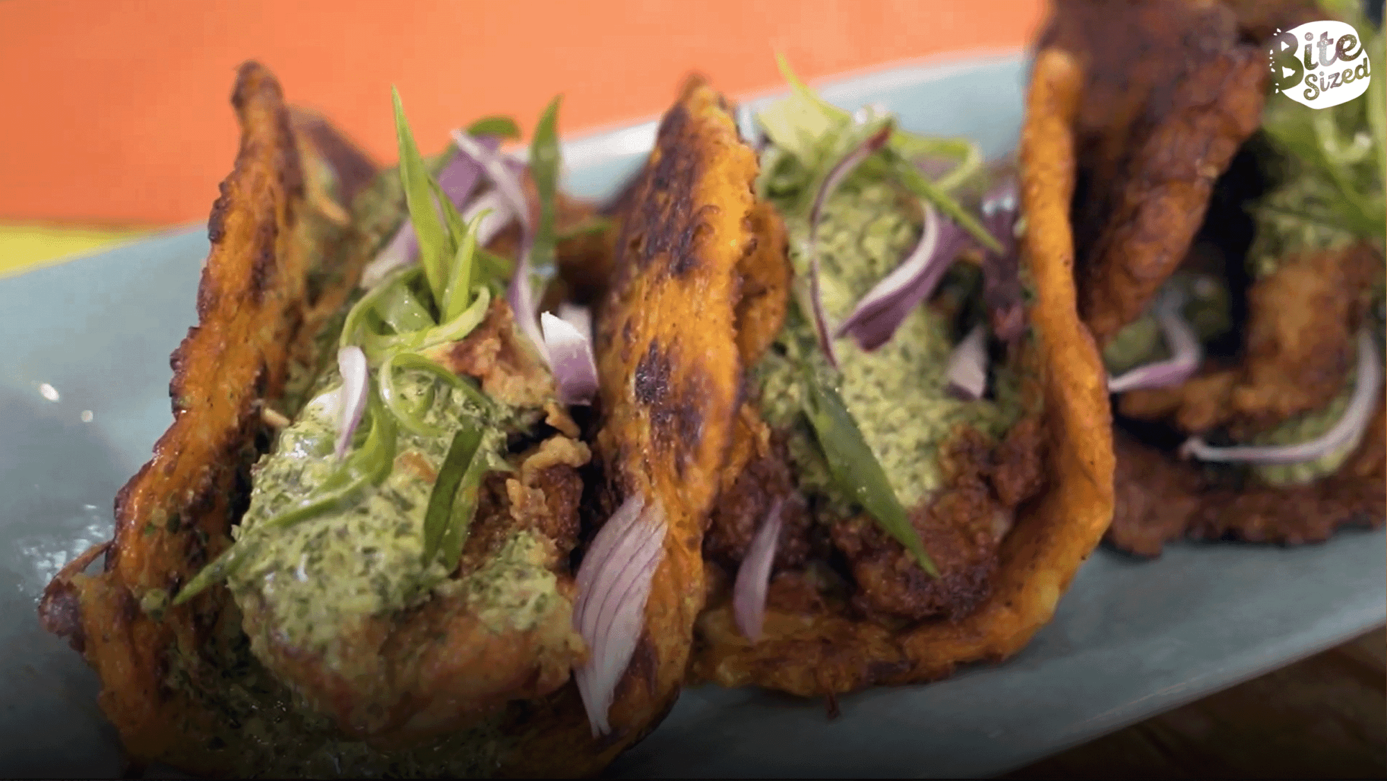 Place the fried fish on the okoy then drizzle with the curry sauce. Garnish with onion leeks and red onion then serve.