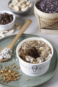 Tsokolate at Tostadong Bigas Concrete (P355) – Frozen chocolate custard blended with Toyo Eatery’s classic toasted rice pudding, candied Palawan cashews, and candied cacao nibs. The frozen custard is made with real cane sugar, cage-free eggs and milk from dairy farmers who pledged never to use artificial growth hormones. The toasted rice is made with local organic black rice from Capas, Tarlac.