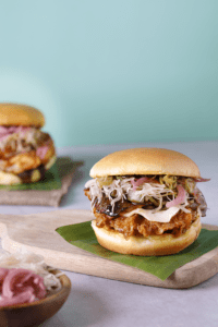 Chicken and Cheek BBQ (P595) – features an all-natural, cage-free crispy chicken thigh, hand breaded and dredged in Panaderya Toyo’s sourdough batter, topped with Toyo Eatery’s pork jowl, BBQ sauce and a pickle medley of atsarang papaya, red onions, burong mangga, cucumber and aruy-uy, all served on a non-GMO potato bun. The pork jowl is from black pigs pasture-raised on in a farm in Batangas and are antibiotic and hormone-free.