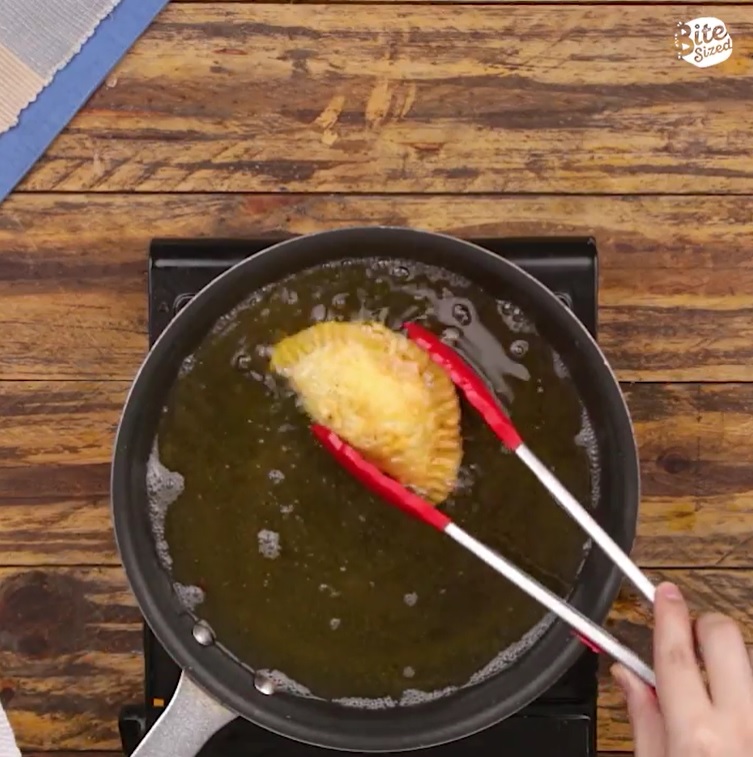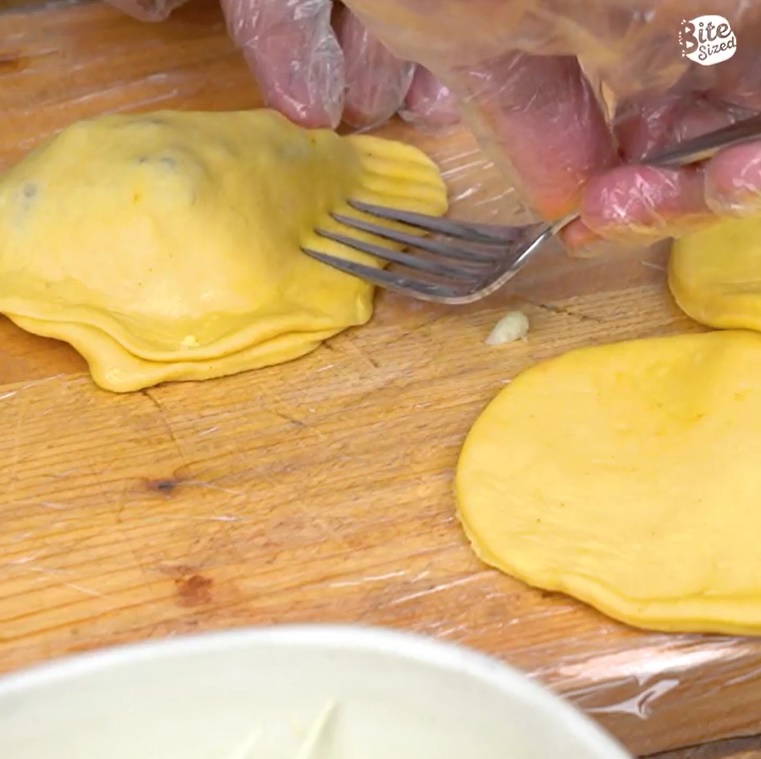 Fold up the dough and seal the edges. Repeat for remaining dough and filling.