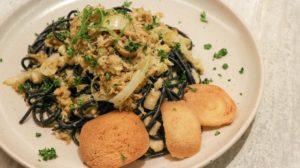 The Crab Cream Squid Ink Noodle is a bestseller and with good reason. At first glance it’s already a stunner: squid ink spaghetti is dressed in a cream-based sauce that’s flavored with mushrooms and lumps of crab meat sauteed in aromatics. Each forkful promises a medley of seafood flavors. Finish it off with the slices of fried mantou buns to mop up all the goodness.