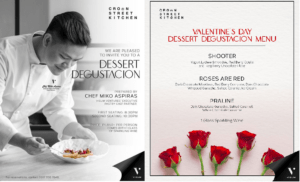 Crown Street Kitchen will not only have one but two special offerings in time for Valentine’s. For February 13-15, the Australian all-day breakfast spot will offer a sumptuous 4-course meal, which includes fresh oysters, truffle pasta, beef ribs, or pork chop, and a Tim Tam-inspired dessert plus a glass of sparkling wine. But, if you have a Valentine’ Day date with a sophisticated sweet tooth then let Visum Venture’s Executive Pastry Chef Partner and award-winning chef Miko Aspiras indulge you in a spectacular dessert-tasting menu with matching bubbly.