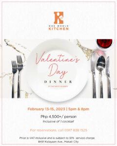 If you and your date happen to be in Baguio for Valentine’s Day then let Chef Waya Araos-Wijangco give you a Feb 14 treat up in the mountains. Dinner costs will depend on what you’ll choose for the night but for sure all options are well thought out and certain to appeal to all diets. There will be two seating schedules available so if you want to have a memorable chilly evening in Baguio then head to Chef Waya’s.