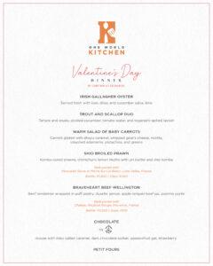 One World Kitchen invited chef extraordinaire Him Uy de Baron to do their Valentine’s offering this year. And just as predicted, it’s a stellar lineup of delicious courses and a special cocktail using products and ingredients available in One World Deli. With items like Irish Gallagher Oysters, Braveheart Beef Wellington, and a chocolate dessert from the Tattooed Baker, you know you’re in for a spectacular date night.
